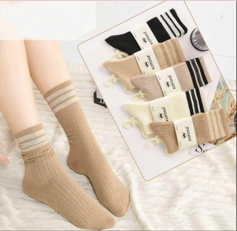 Модні щільні стильні шкарпетки в асортименті білі, чорні та бежеві з трьома смужками (фото є), є шкарпетками з найвищим рейтингом за перевагою споживача. Комфортна гумка модель Корона фешн без принта.